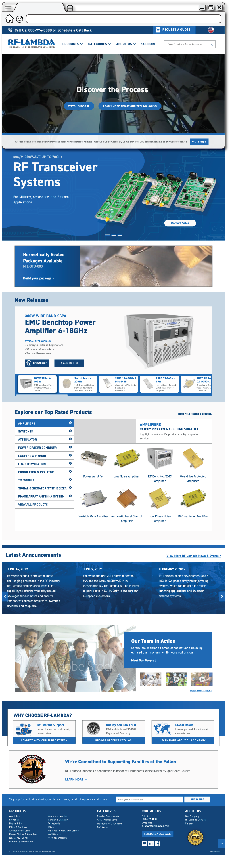 Updating the online visual branding for a growing electronics companyRF-Lambda is a global developer, manufacturer, and distributor of RF test equipment serving commercial, aerospace, and military customers. As the company scaled, its digital presence needed to communicate precision, trust, and technical clarity—especially for engineers, procurement teams, and enterprise buyers.